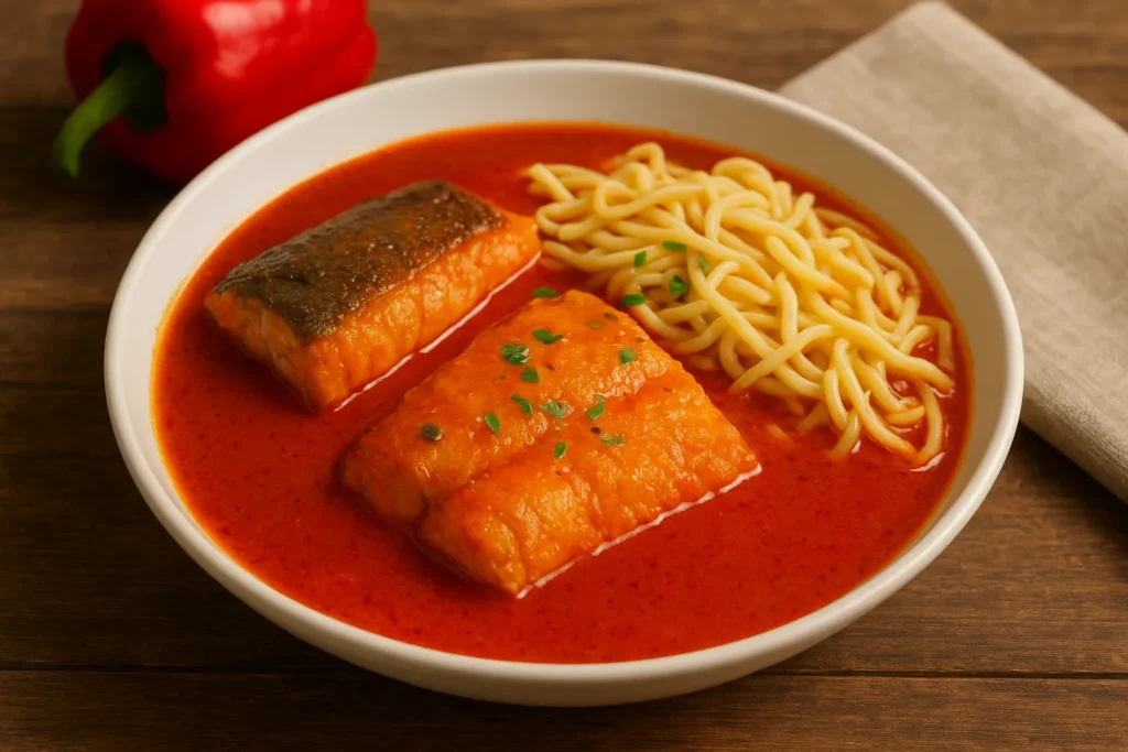 ● Harcsa és ponty filé, paprikás mártásban, tésztával