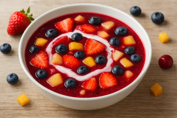 ● Szezonális gyümölcsökből készült, tejszínnel ízesített leves